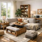 Multifunktionale Möbelstücke kombinieren Stauraum mit Arbeitsflächen. Beispielsweise integrieren Kücheninseln Schubladen und Ablagen. So entsteht eine zentrale Arbeitszone mit viel Platz für Vorräte und Geräte.